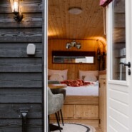 Het kingsize bed (180×200 cm) is slim in de lengte van de wagen gebouwd en voorzien van een lattenbodem en opberglade. Alles voelt ruim en logisch ingedeeld, zonder in te leveren op sfeer. Perfect voor twee personen die knus en praktisch willen verblijven.