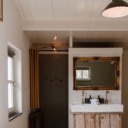 De badkamer bevindt zich op de eerste verdieping, handig dichtbij het slaapvertrek. Je vindt hier een inloopdouche, dubbele wastafel en alles wat je nodig hebt voor een frisse start van de dag. De aparte toiletruimte op de begane grond zorgt voor extra gemak, vooral bij verblijf met meerdere gasten.